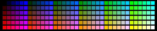 The colors are all possible combinations of red,green,blue=0,64,128,192,255