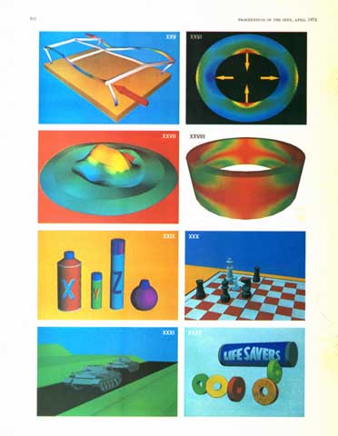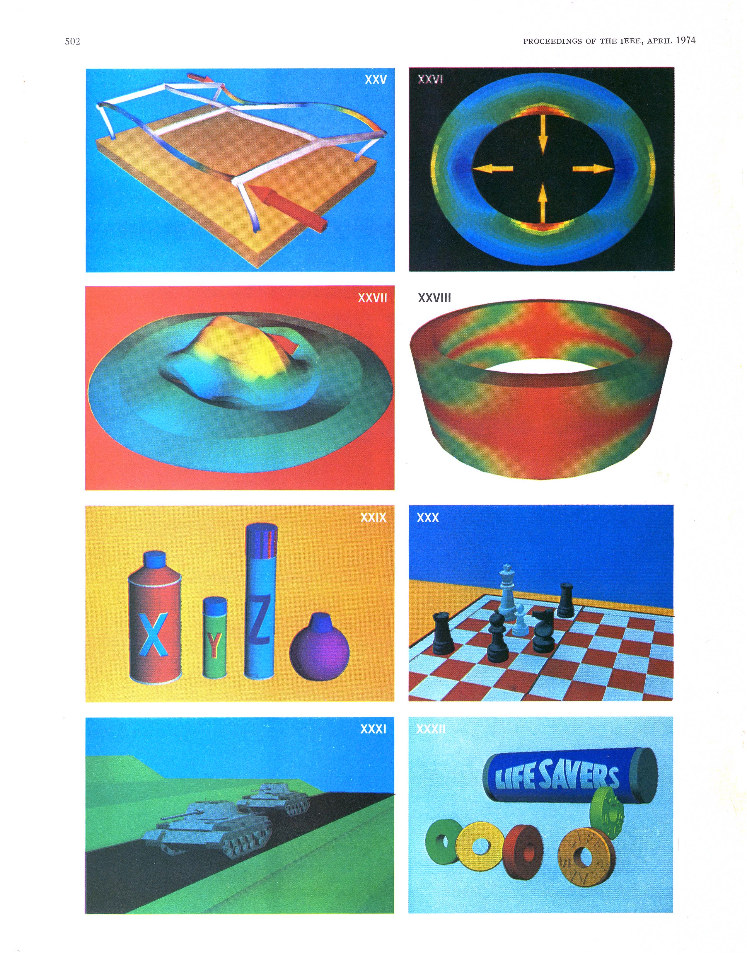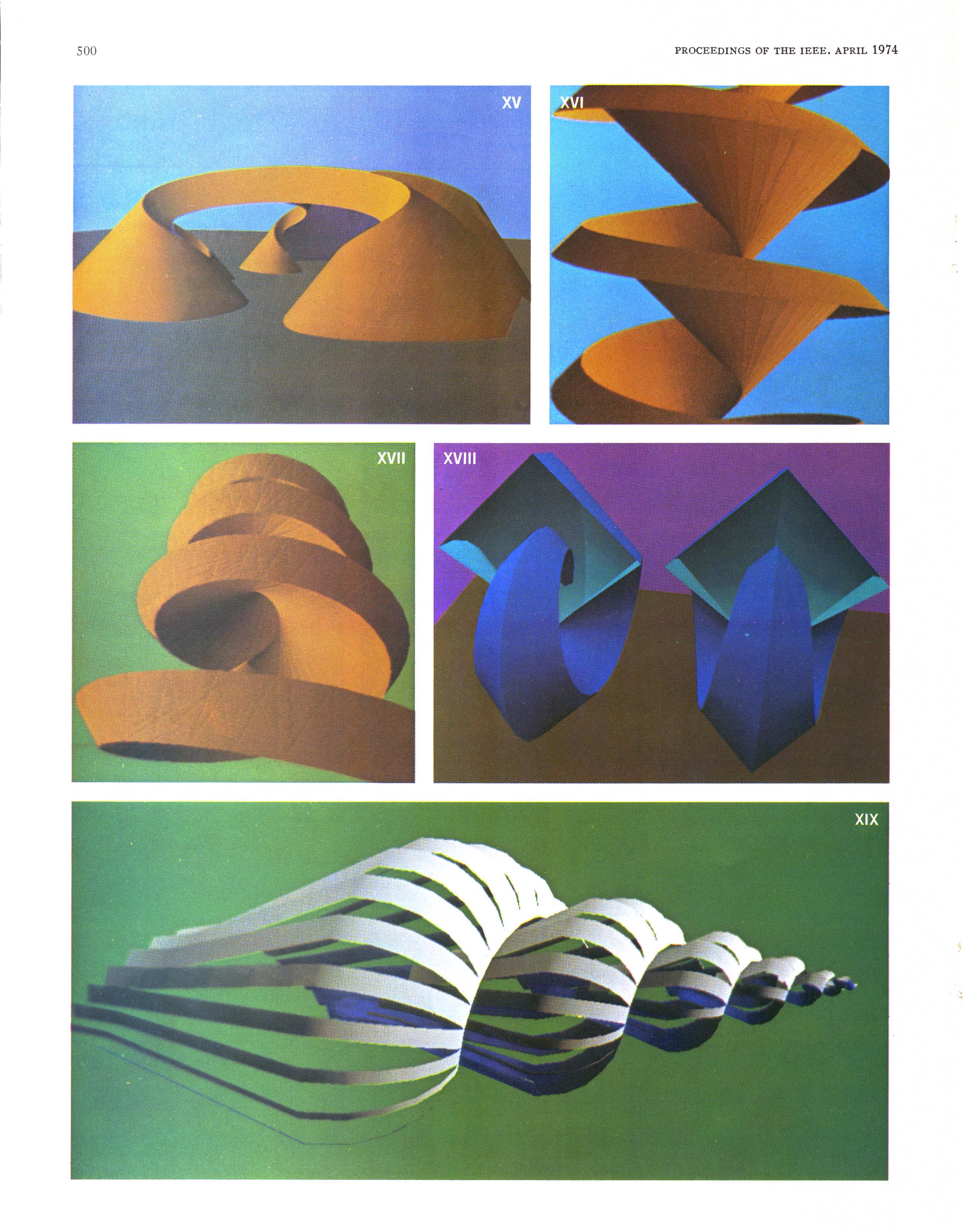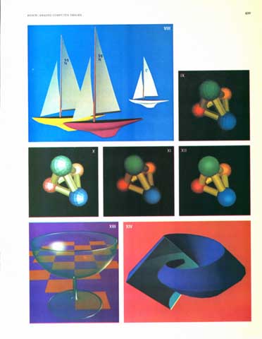 Plate V. Gouraud developed a shading technique which takes a faceted representation of an object and shades it as if it were smooth; an incredible breakthrough.